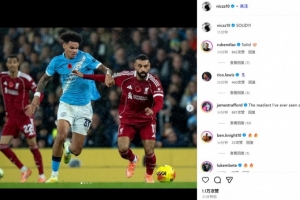 奥赖利也通过社媒晒出自己对位萨拉赫的比赛照,并配文“硬!”表达自己的兴奋之情。