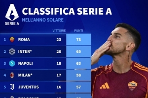 体育资讯11月10日讯 德国转会市场统计了今年意甲球队拿到的积分,列出2025年意甲积分榜单,罗马73分居首。