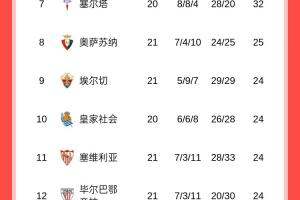 巴萨52分领跑,皇马51分紧随其后,马竞44分暂排第三。