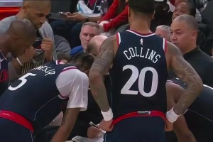 下一篇: 画面喜感!最后时刻,泰伦-卢将战术板交给助教范甘迪,自己站在一旁