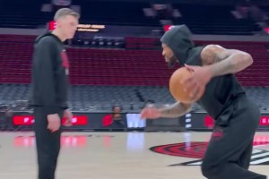 下一篇: 杀手锏莱昂纳德赛前热身练习中距离单打~